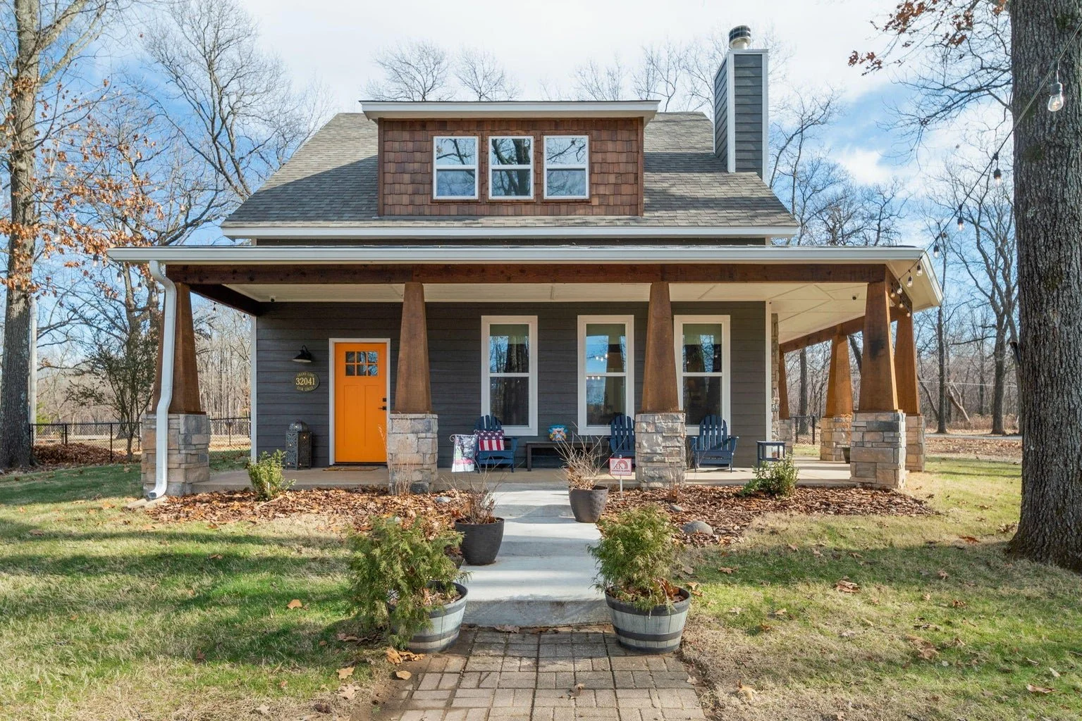 This charming detailed lake home, is nestled in the woods includes architectural detailing that gives this craftsman house a warm feeling. You’re greeted by a generous covered wrap around porch -ideal for outdoor enjoyment. This 3 bed, 2.5 bath plus bunk room & 3 car rear load garage includes shake siding, stone accents & all the modern amenities. The stone wood burning fireplace is flanked by windows & built ins.